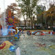 The repair included a full range of dismantling and restoration works. The fountain’s surface was cleaned with sandblasting; the old water supply system, excess concrete layer above the mosaic, outdated pavement, and lighting were all removed.