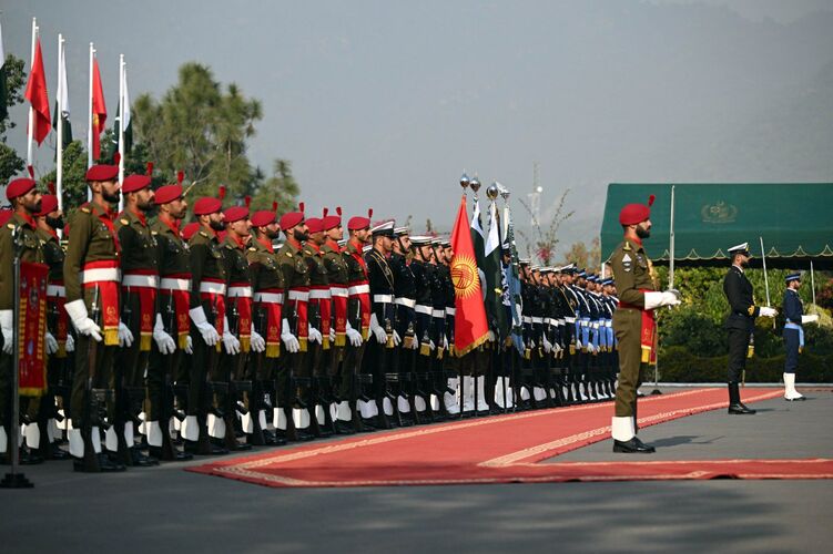 Prime Minister Shehbaz Sharif welcomed the head of state, and following the exchange of greetings, a military band performed the national anthems of Kyrgyzstan and Pakistan.