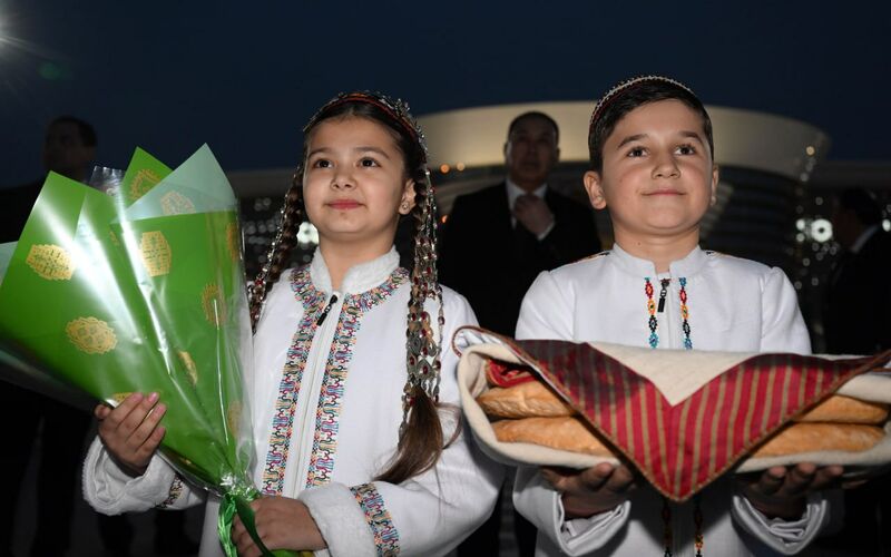 Sadyr Japarov was welcomed by Chairman of the Halk Maslahaty of Turkmenistan Gurbanguly Berdimuhamedov and other officials.