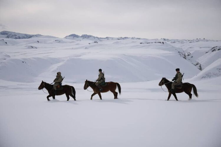 Kyrgyzstan’s border guards continue to carry out border protection and patrol duties in high-altitude and hard-to-reach areas of the country during the winter period, including along the section of the state border with China in Naryn region.
