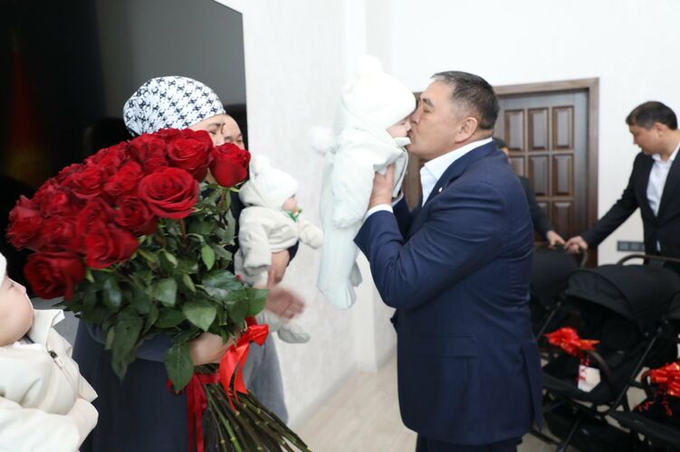 Kamchybek Tashiev presents apartment to young family with triplets