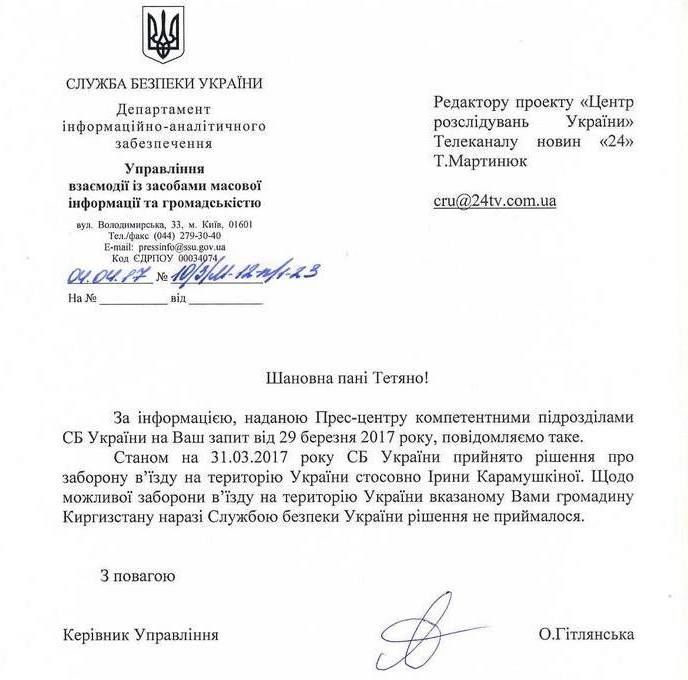 Security Service of Ukraine bans entry of Irina Karamushkina into country