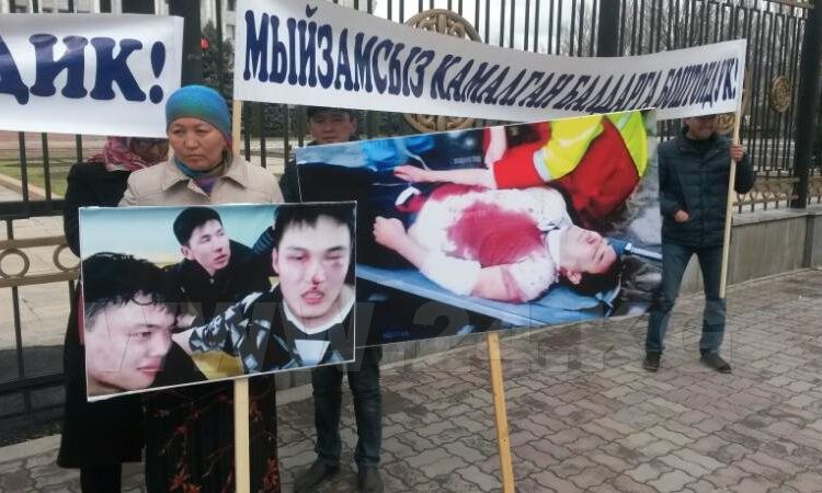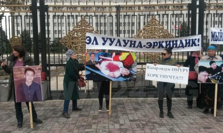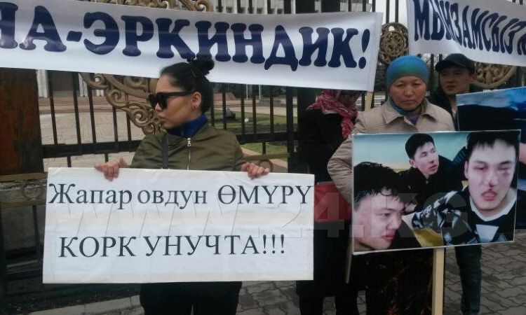 There are only seven people now: the family of Japarov, his wife and the wives of the arrested relatives of the former deputy. They hold the posters «Freedom to the son of the people," «Japarov’s life in danger," «Freedom for illegally detained children.»