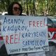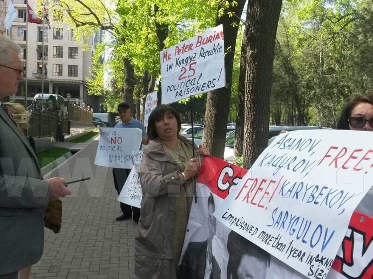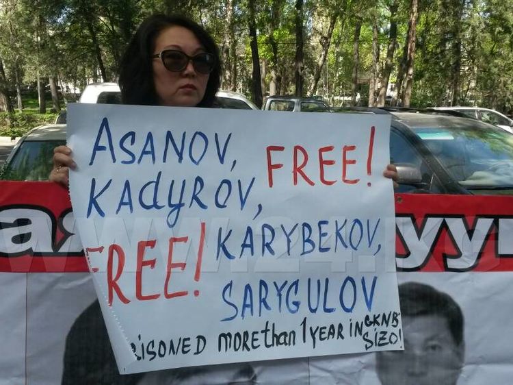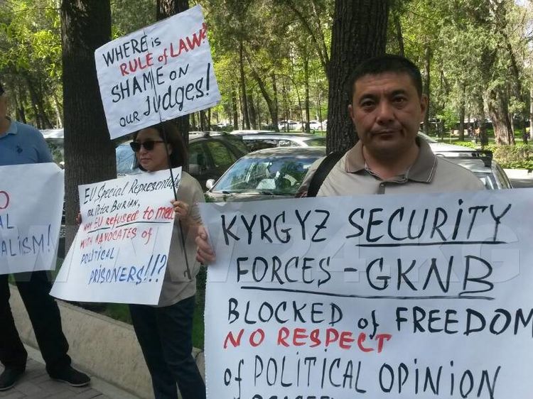 Supporters of political prisoners hold a rally in Bishkek in front of the Business Center Orion, where the Delegation of the European Union to the Kyrgyz Republic is located.