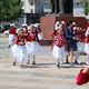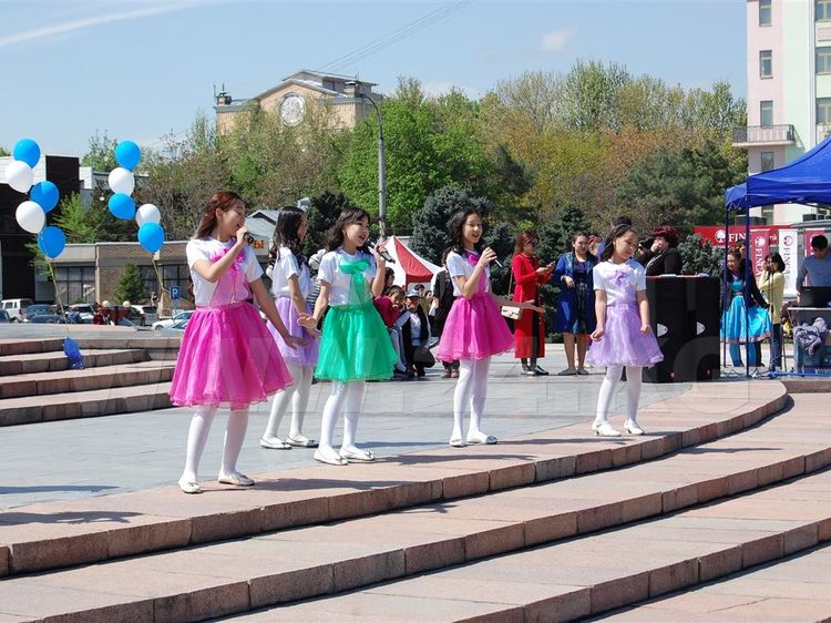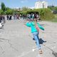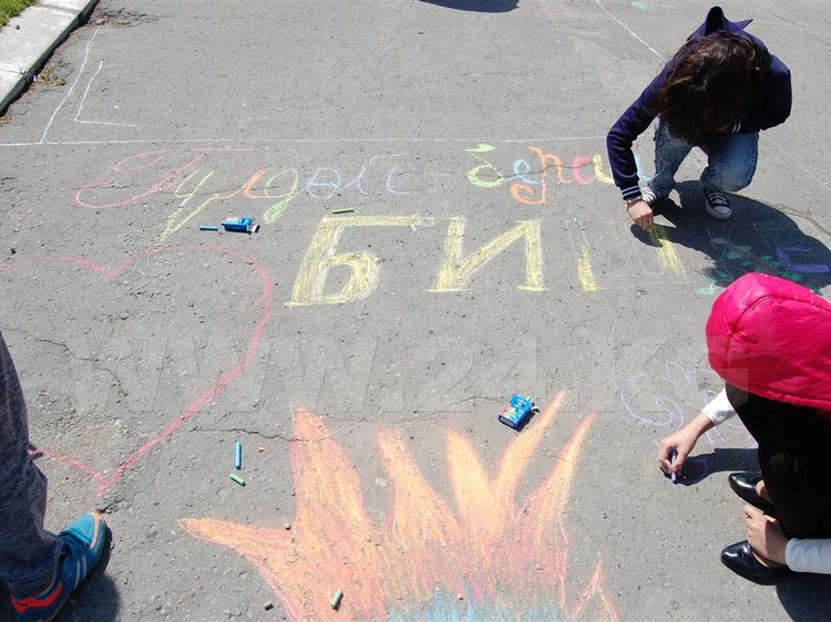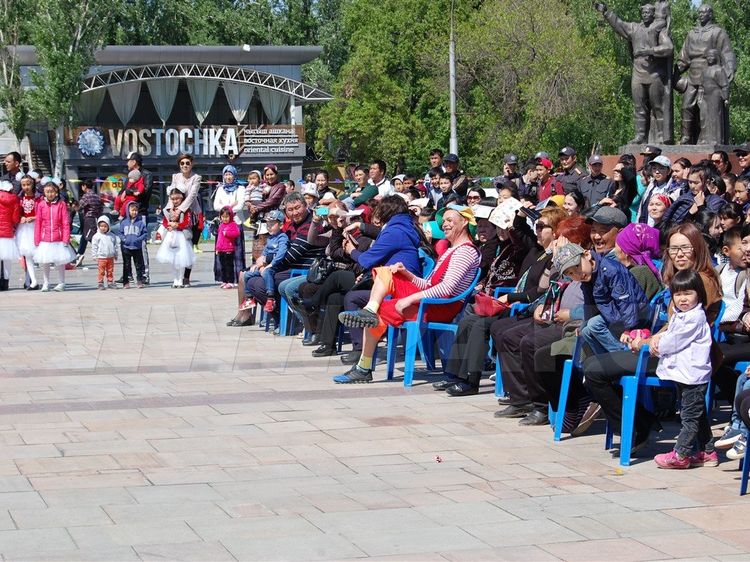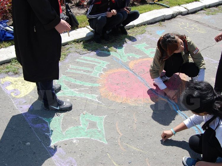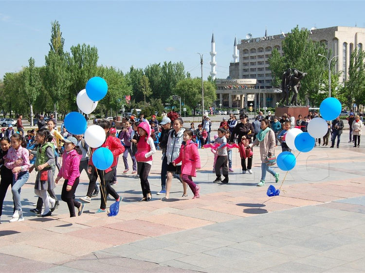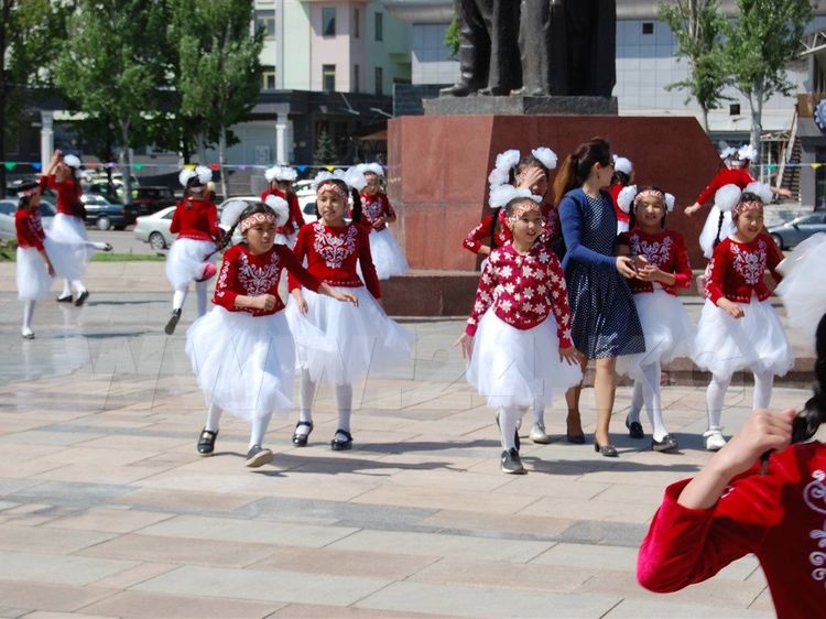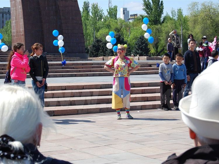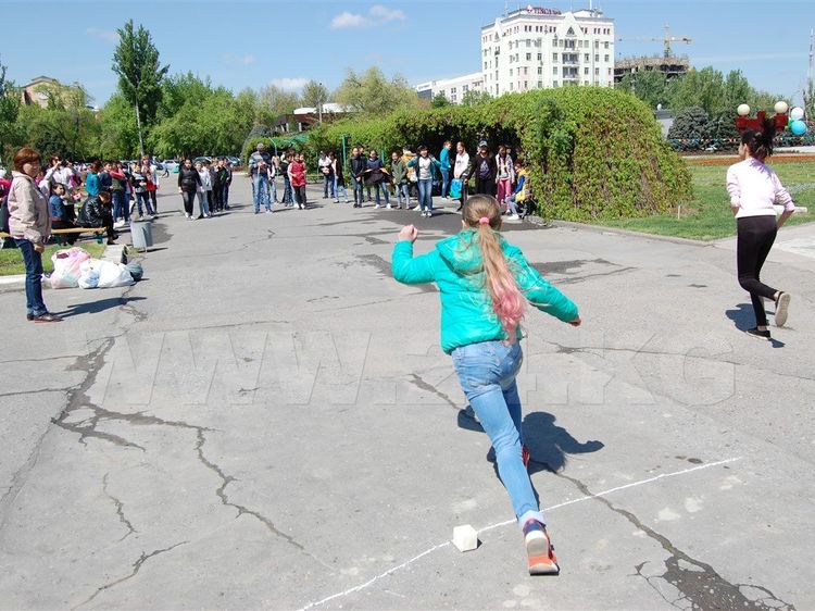 There are clowns, young epic of Manas tellers, singers and dancers. The drawings on the asphalt and the sports relay are organized.