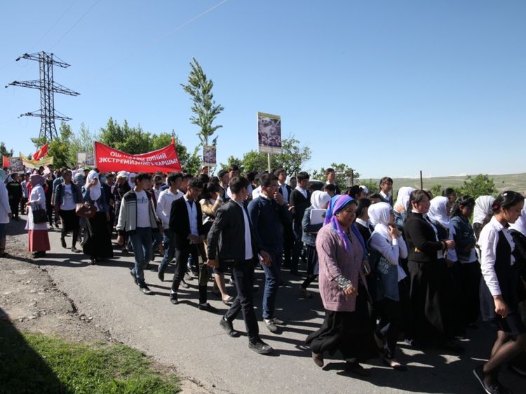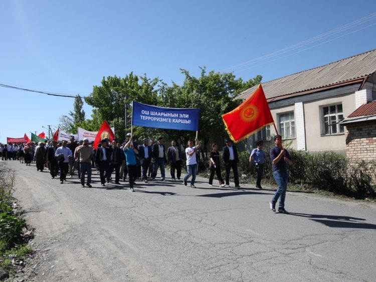 A march against terrorism and extremism took place in Amir-Timur, Turan and Dostuk micro districts of Osh city the day before. Press service of the mayor’s office of the southern capital reported.