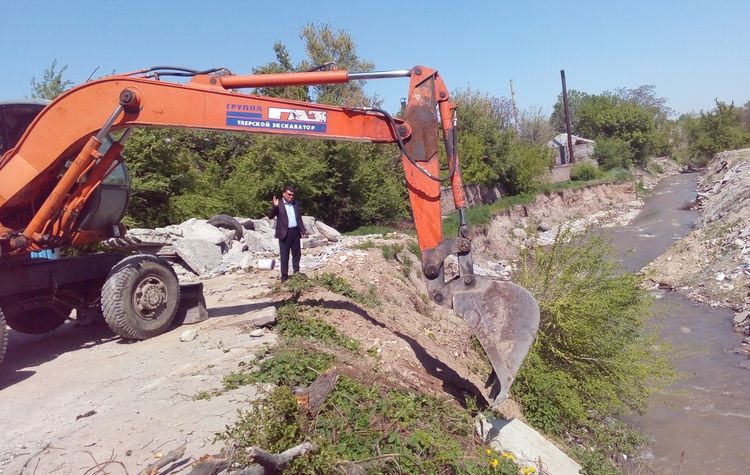 The head of the Pervomaisky district administration Askerbek Aliyev together with the head of the District Department of the Ministry of Emergency Situations S. Chonoev got acquainted with the progress of the shore protection works in Ala-Archa riverbed and the work on padding the roads in Zavodskoy settlement.