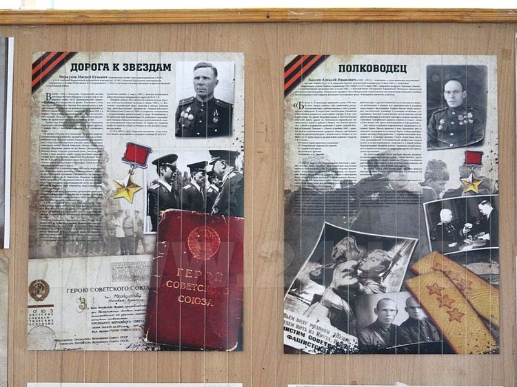 The main building of the Kyrgyz-Russian Slavic University named after B. N. Yeltsin hosts a photo exhibition «They shield life with themselves…," dedicated to the 72nd anniversary of the Victory in the Great Patriotic War.