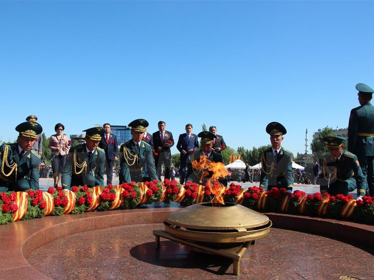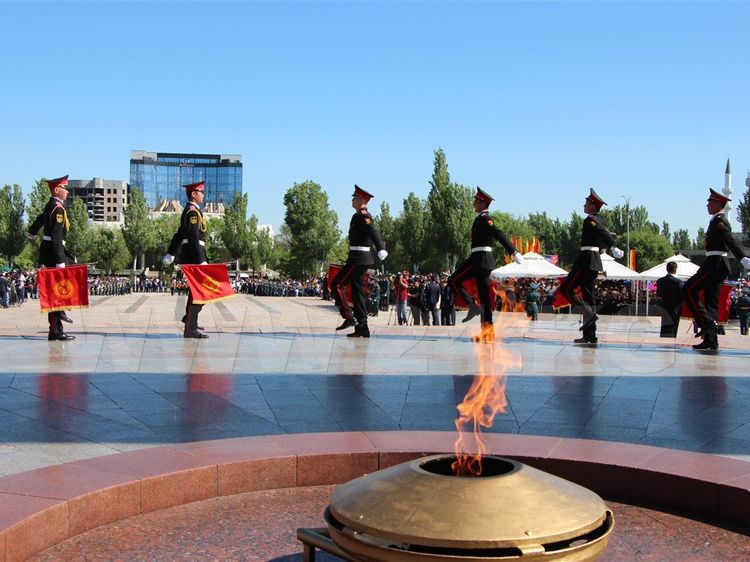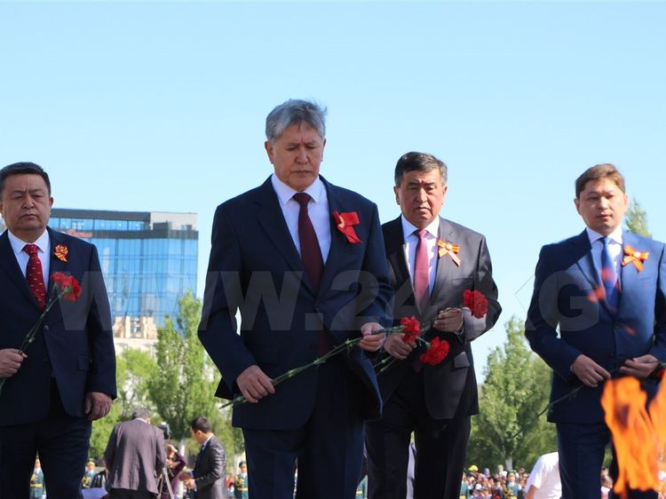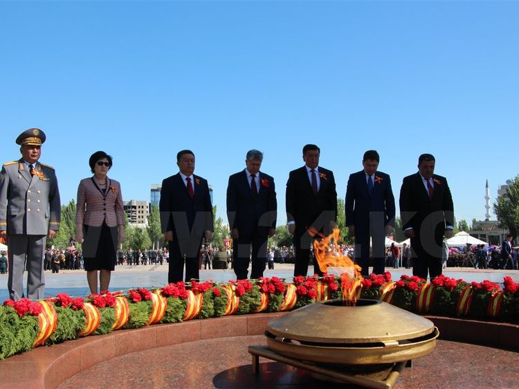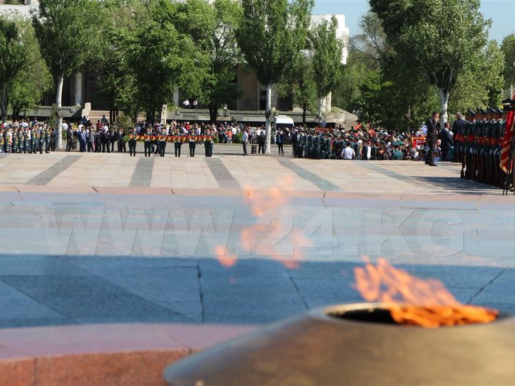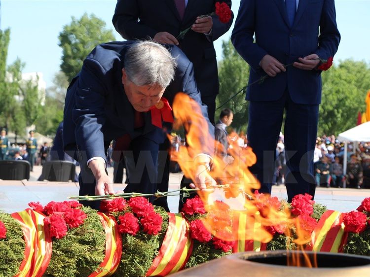 In Bishkek, where a meeting-requiem dedicated to the 72nd anniversary of the Victory in the Great Patriotic War was held, President of Kyrgyzstan Almazbek Atambayev laid flowers to the Eternal Flame.