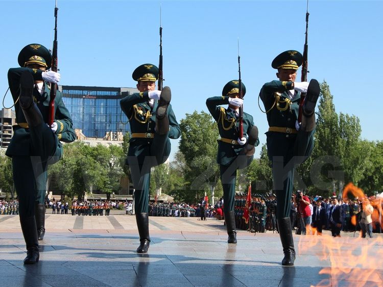 The ceremony was also attended by heads of branches of state power, the leadership of the presidential staff, the General Staff of the Armed Forces, the Bishkek City Administration, war veterans, heads of diplomatic missions and missions, military attaches of foreign embassies and military personnel.