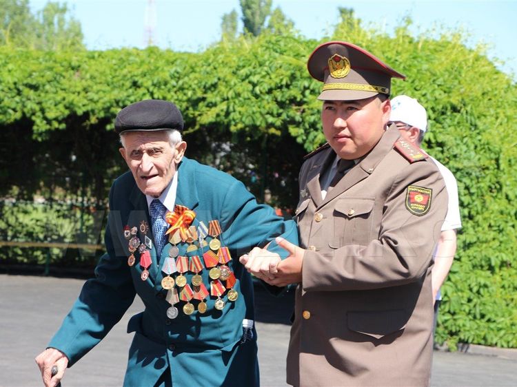 «We bow our heads before the immortal memory of those who died on the battlefields, those who gave their lives for our sake, for the sake of a peaceful sky for all of humanity," President Almazbek Atambayev said in his speech on the occasion of the national holiday.