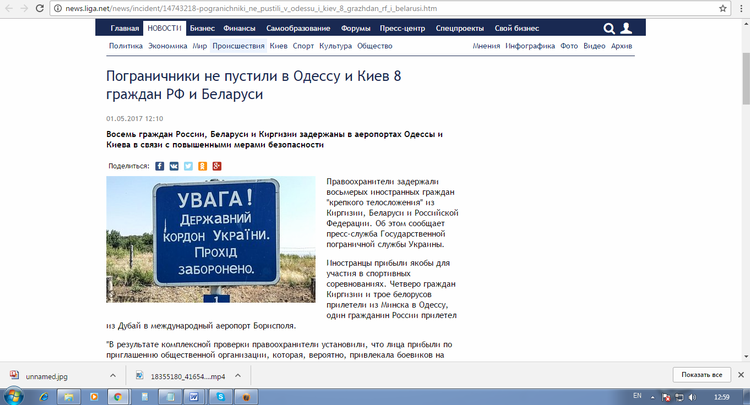 At the same time, on May 1, the Ukrainian media, referring to the press service of the State Border Service of Ukraine, issued a statement that «in connection with increased security measures, eight citizens of Russia, Belarus and Kyrgyzstan were detained at Odessa and Kiev airports.»