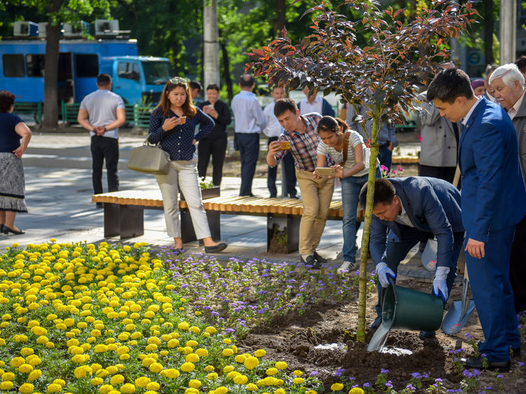 Sakura planting ceremony in honor of the 25th anniversary of the establishment of diplomatic relations between Kyrgyzstan and Japan took place in Skazka (Fairy Tale) park at the intersection of Abdrakhmanov and Toktogul Streets. Press service of the Bishkek Mayor’s Office reported.