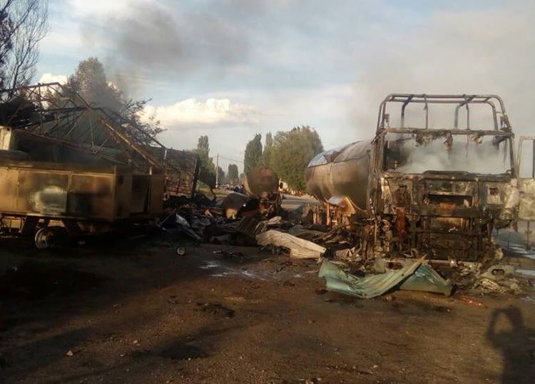 According to preliminary data, one gas carrier, two Hyundai Porter trucks, one passenger car, gas cylinders burnt down. Three firefighters were involved.