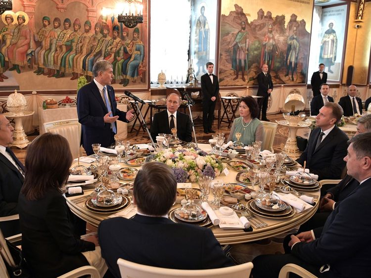 The Presidents of Kyrgyzstan and Russia discussed the outcomes of the talks during dinner. The ceremonial dinner was held by Vladimir Putin in honor of Almazbek Atambayev and his wife Raisa, the press service of the Kremlin reported.