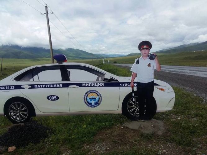 The patrol police department for Chui region placed cardboard cut-out of patrol policeman at the 143rd kilometer of Bishkek-Osh highway to prevent traffic accidents.