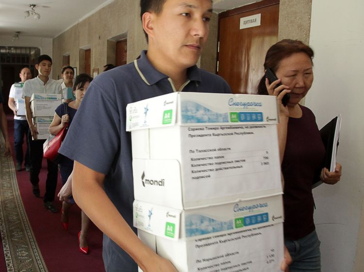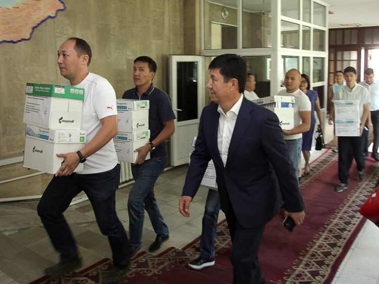 The CEC told 24-kg.com news agency that the candidate for the presidency from Akshumkar party personally came to the commission to hand over several dozen packets with the signatures of the Kyrgyzstanis.
