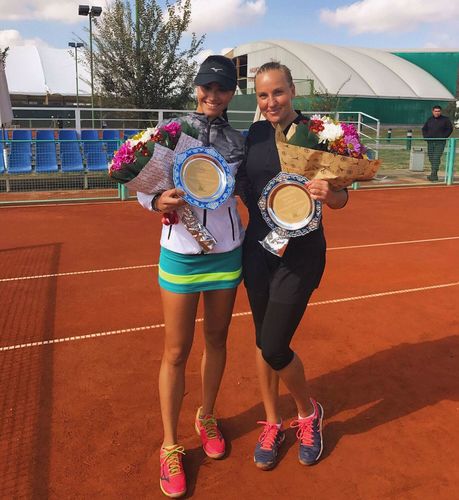 In doubles, the Kyrgyzstani played in a duet with Mariana Drazic (Croatia). On the way to the final they beat Albina Khabibulina (Uzbekistan) and Stephanie Judith Wisher (Netherlands) — 6:3, 6:3, Polina Goloputova (Kazakhstan) and Arina Solomatina (Russia) — 6:2, 6:0, Ulyana Aizatulina and Margarita Lazareva (Russia) — 6:1, 6:2. In a decisive match, as well as a week earlier at another tournament in Shymkent, Palkina and Drazic beated Darya Detskovskaya and Zhibek Kulambaeva (both from Kazakhstan) — 7:5, 6:2.