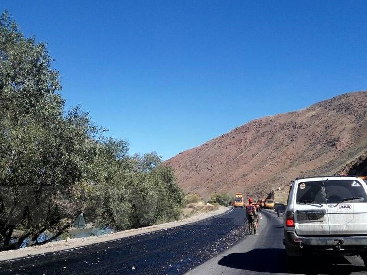 Asphalt-concrete cover was completely laid at the section of the road in Kyzyl-Dzhyldyz and Aral villages with a length of 12 km in 2016. Earthworks, drainage, bridge work, and transfer of communications continue at Kazarman — Jalal-Abad section of 142 km long, including the tunnel at Kok-Art Pass. Since the beginning of the project, the total length of the bottom course comprised 76 km, or 56 percent.
