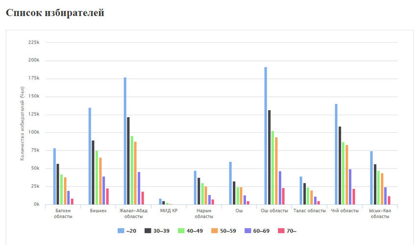 In total, 3,025,770 people took part in the presidential elections in Kyrgyzstan. Lists of voters can be found here.