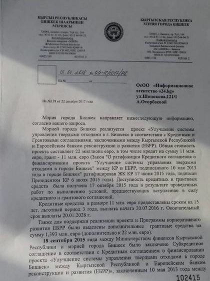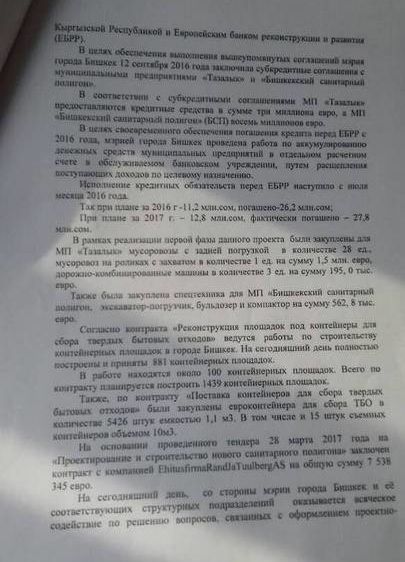 The City Administration noted that the fulfillment of credit obligations to EBRD began in July 2016. During this time, more than 50 million soms have been paid off.