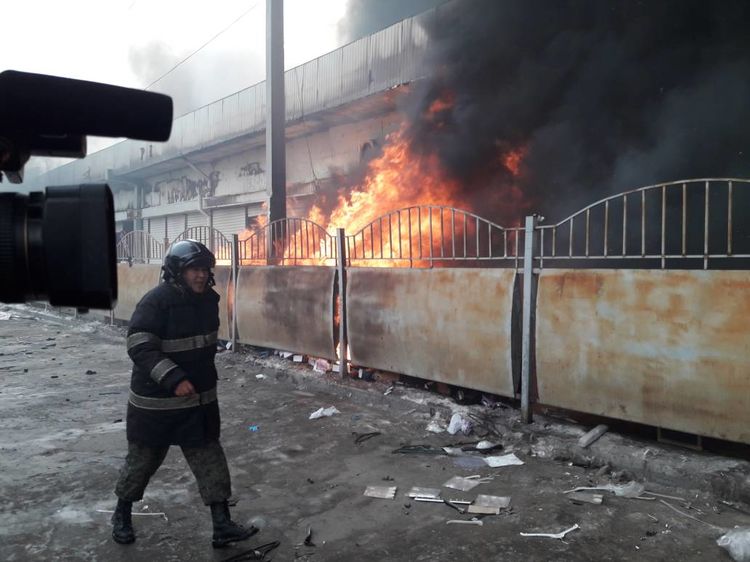 Osh market is burning in Bishkek. The fire runs through the trade pavilions.