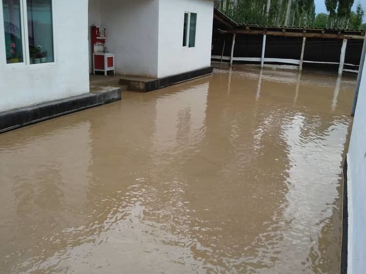 Water from mudflow protecting canal partially flooded the yards, sheds, five hectares of arable land and the school yard in Ak-Zhar village of Kara-Buura district, Talas region, due to heavy rains. The water did not reach the houses, the press service of the Ministry of Emergency Situations reported.