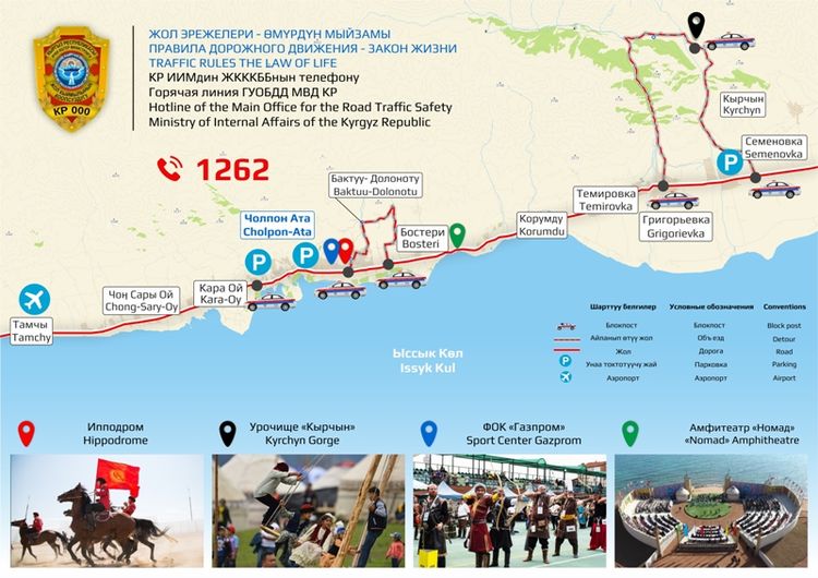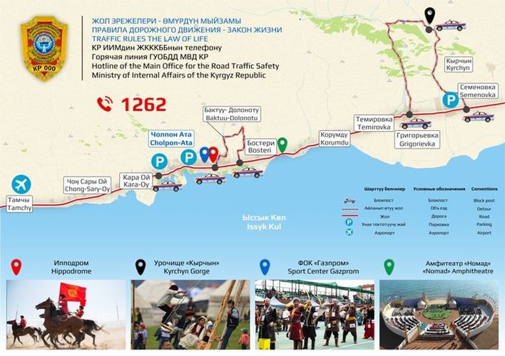 The Central Road Safety Department of the Ministry of Internal Affairs will introduce traffic restrictions for trucks, heavy vehicles, buses and minibuses, as well as agricultural machinery and vehicles carrying dangerous goods from August 30 to September 9 for the time of the 3rd World Nomad Games.