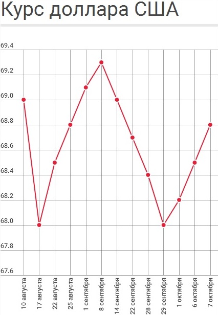 Перед выходными доллар в Кыргызстане приблизился к отметке в 69 сомов. За неделю он подорожал на 80 тыйынов.