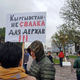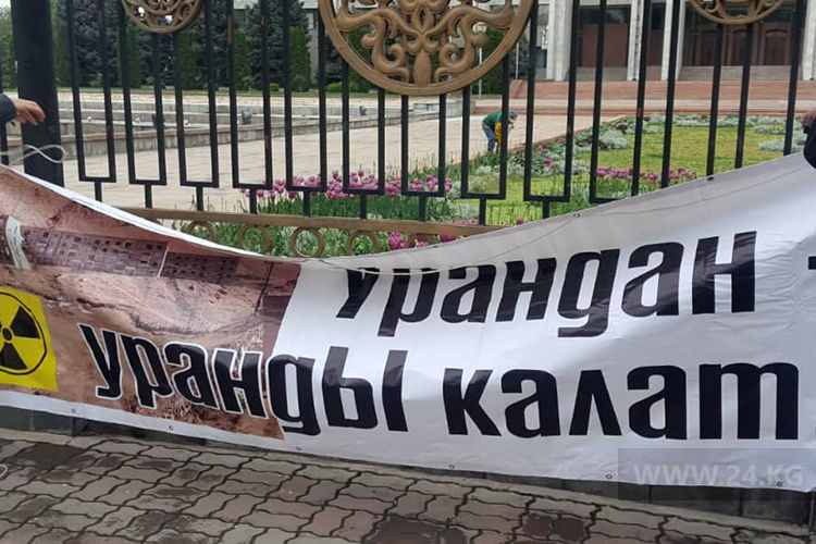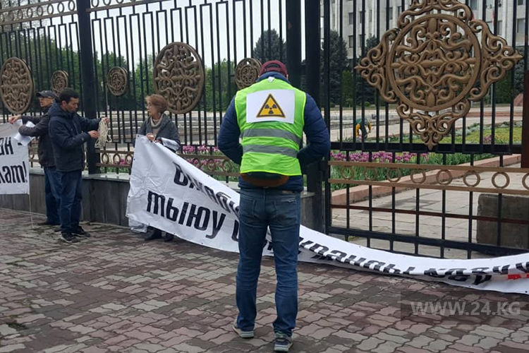 Жогорку Кеңештин имаратынын алдында уран казууга каршы митинг өтүүдө.