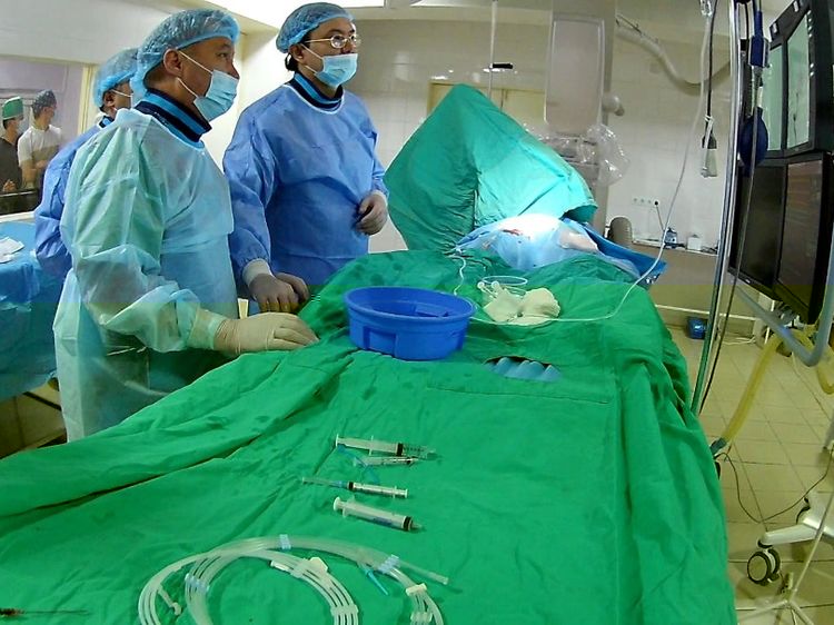Ош облустар аралык бириккен клиникалык ооруканасынын нейрохирургия бөлүмүнүн жетекчиси Улан Каримовдун айтымында, операция жогорку технологиялык медициналык кызмат категориясына кирет жана скальпелсиз операция жасалат. Бейтаптын жамбашындагы кызыл кан тамырга катетер орнотулуп, мээнин майда кан тамырларына түтүкчөлөрдү өткөрүшөт.