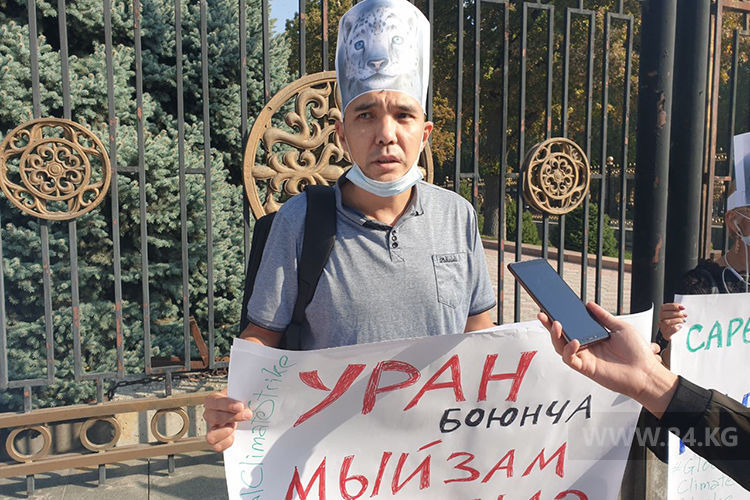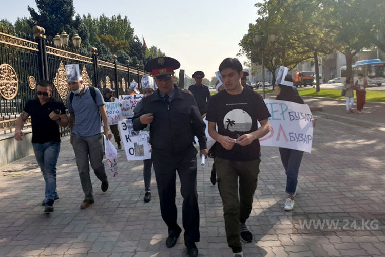 Бишкекте Жогорку Кеңештин имаратынын алдында курчап турган айлана-чөйрөнү булгоого каршы акция өтүп жатат.