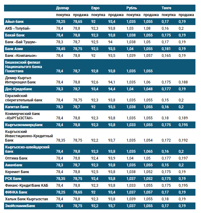 Валюталардын коммерциялык банктардагы наркы
