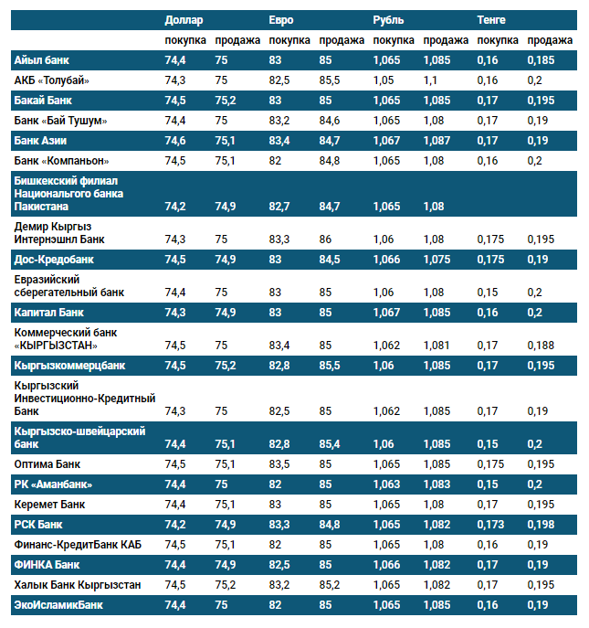 Валюталардын коммерциялык банктардагы наркы