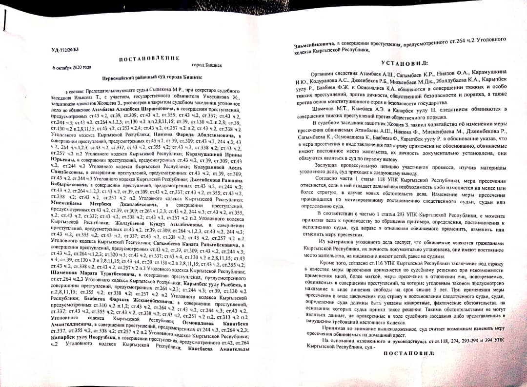 «УКМК кызматкерлеринин билдирүүсүнө ылайык, Атамбаев массалык дүрбөлөң баштаган деп айыпталууда, бирок муну тастыктаган бир да расмий документ берилген жок. 48 сааттык камакка алуу мөөнөтү аяктады, бирок баш коргоо чарасы да карала элек. Мурдагы президентти эмне үчүн эмдигиче камакта кармагандары да түшүнүксүз», — деди Замир Жоошев.