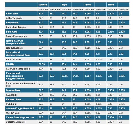Валюталардын коммерциялык банктардагы бүгүнкү наркы