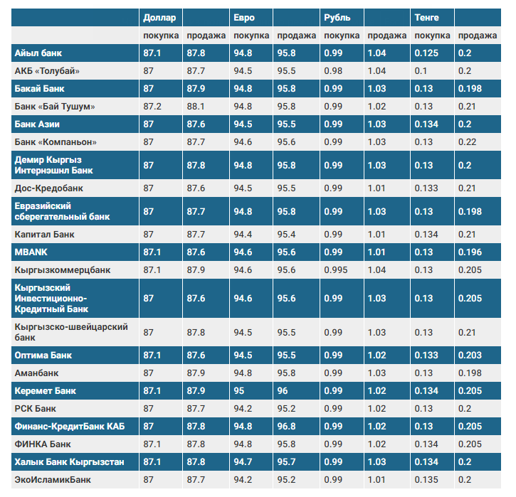 Валюталардын коммерциялык банктардагы наркы