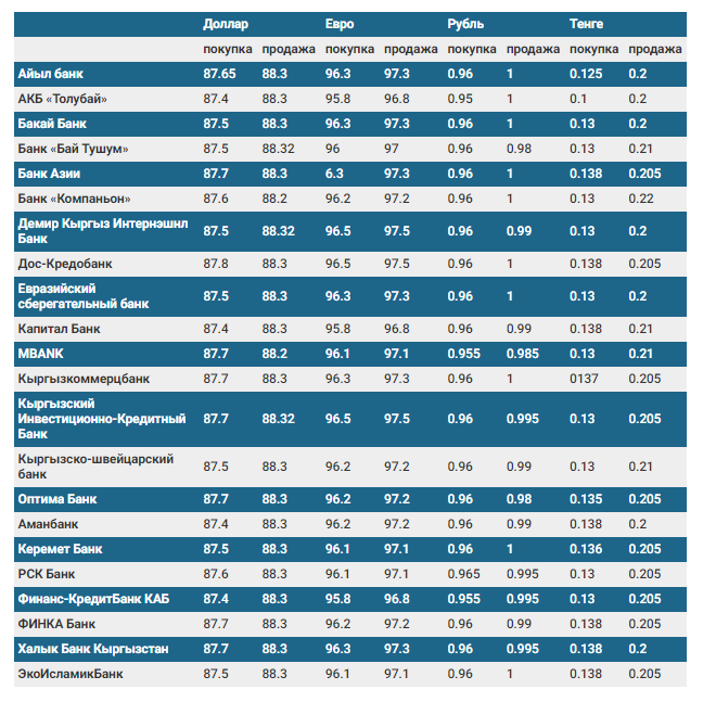 Валюталардын коммерциялык банктардагы бүгүнкү наркы
