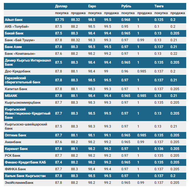 Валюталардын коммерциялык банктардагы бүгүнкү наркы