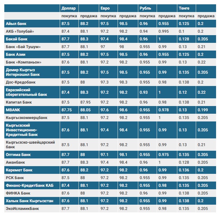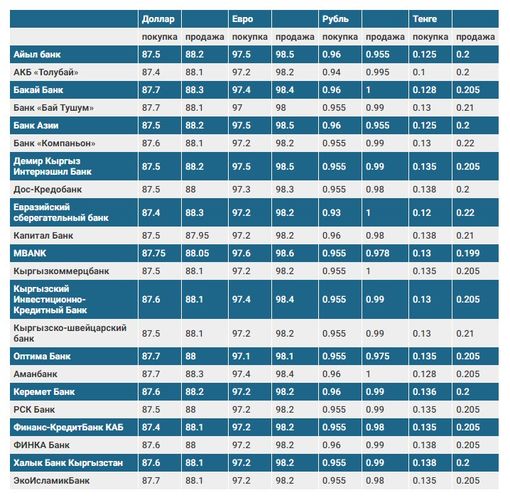 Валюталардын коммерциялык банктардагы бүгүнкү наркы