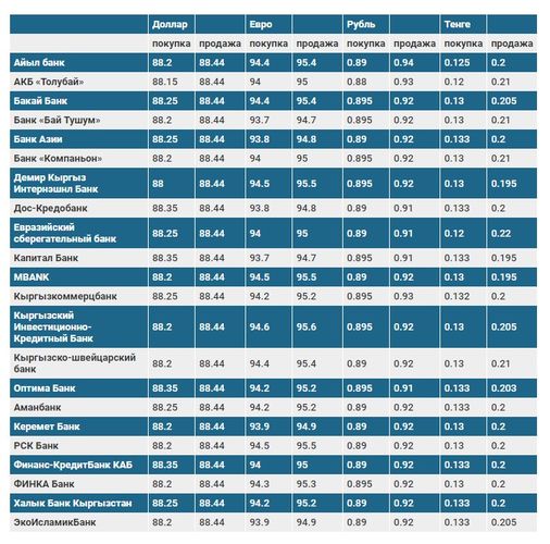 Валюталардын коммерциялык банктардагы бүгүнкү наркы