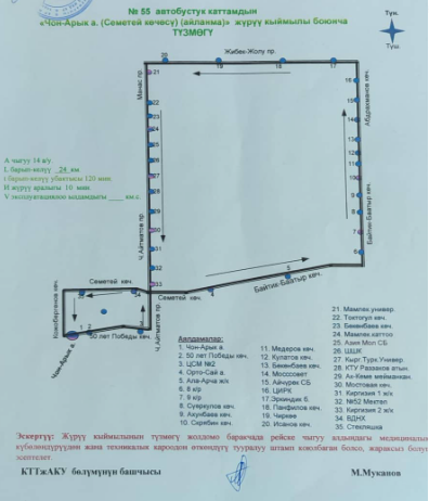 № 55 автобустун маршруттук каттамы кайрадан өзгөртүлдү