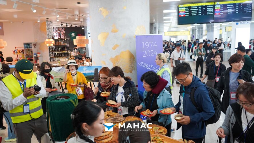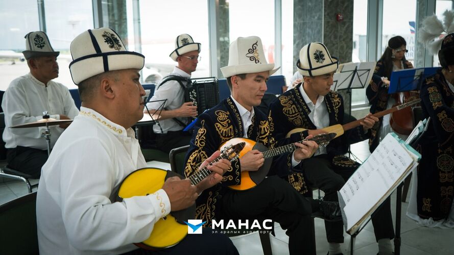 Транзиттик рейстин жүргүнчүлөрү үчүн көңүл ачуучу программа — этнофуршет, Кыргызстандын кооз жерлеринин фото жана видео көргөзмөсү, ошондой эле улуттук классикалык оркестрдин аткаруусу уюштурулду.