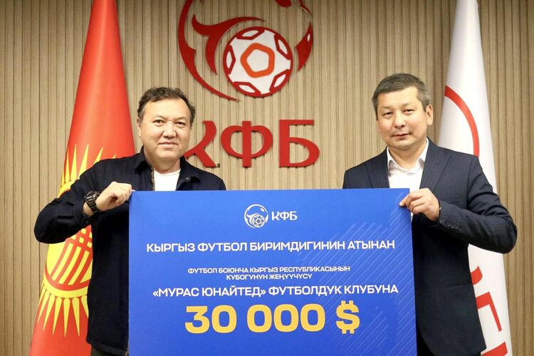 Кыргызстандын футбол биримдигинин 1-вице-президенти Нурдин Букуев «Мурас Юнайтед» (Жалал-Абад) футболдук клубунун өкүлдөрүнө өлкө кубогунун жеңүүчүсү үчүн 30 миң доллардын сертификатын тапшырды. Бул тууралуу Кыргыз футбол биримдиги социалдык тармактарда билдирди.