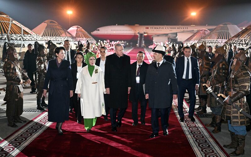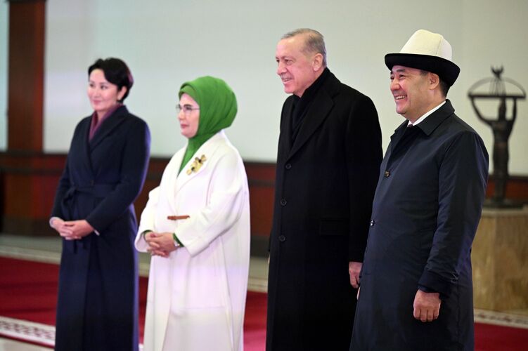 Түркиянын лидери Режеп Тайып Эрдоган Бишкекке мамлекеттик сапар менен келди. Аны “Манас” аба майданында президент Садыр Жапаров тосуп алды. Бул тууралуу мамлекет башчынын басма сөз кызматы билдирди.
