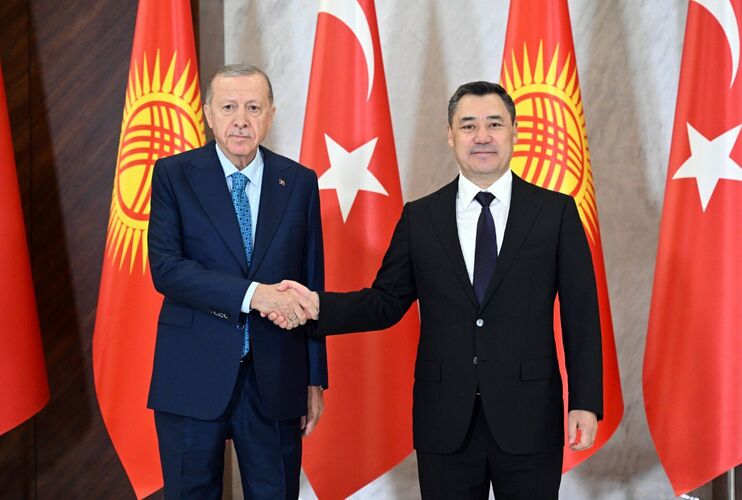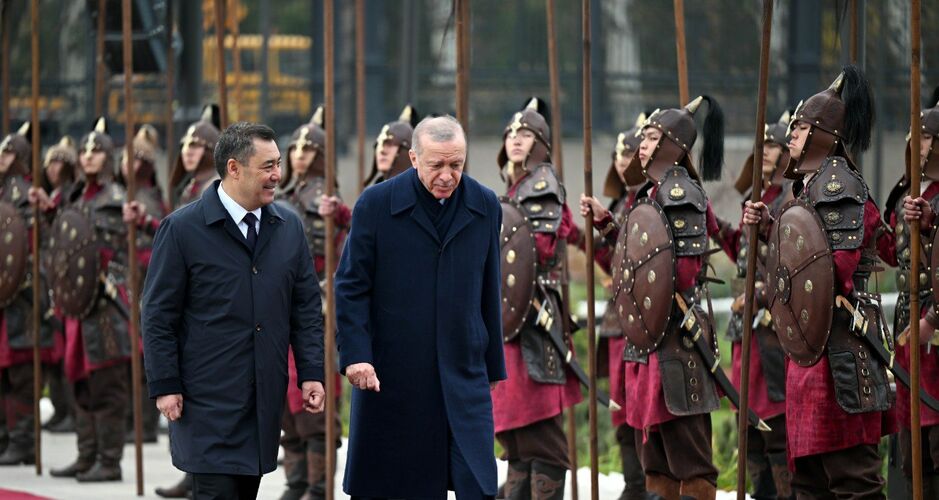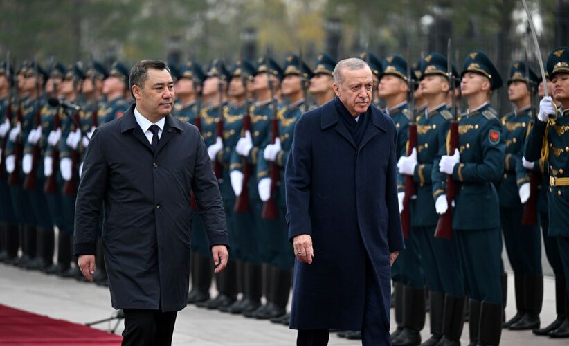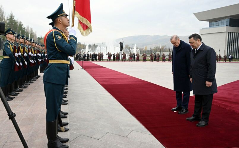 Бүгүн, 5-ноябрда Түркиянын президенти Режеп Тайып Эрдогандын Кыргызстанга мамлекеттик сапары алкагында сүйлөшүүлөрү өттү. «Ынтымак Ордо» президенттик администрациянын имаратынын кире беришинен Кыргызстандын президенти Садыр Жапаров тосуп алды.