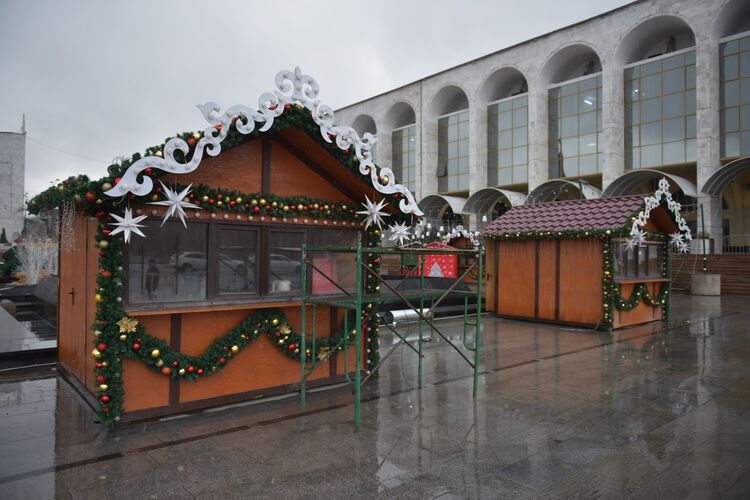 «Бишкексвет» муниципалдык ишканасынын адистери гирляндаларды орнотууда жана жакында майрамдык оюнчуктарды илип башташат.