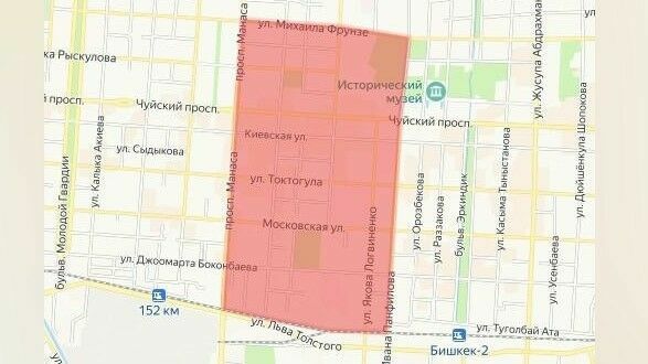 Бишкек мэриясынын маалыматына караганда өчүрүү аймагы төмөнкү көчөлөр менен чектелет: