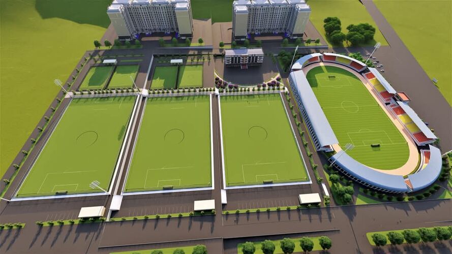 Спорт комплексинин жалпы аянты 10 гектарды түзөт. Аймакта үч машыгуу аянтчасы, төрт мини-футбол аянтчасы жана кийим алмаштыруучу жай бар.