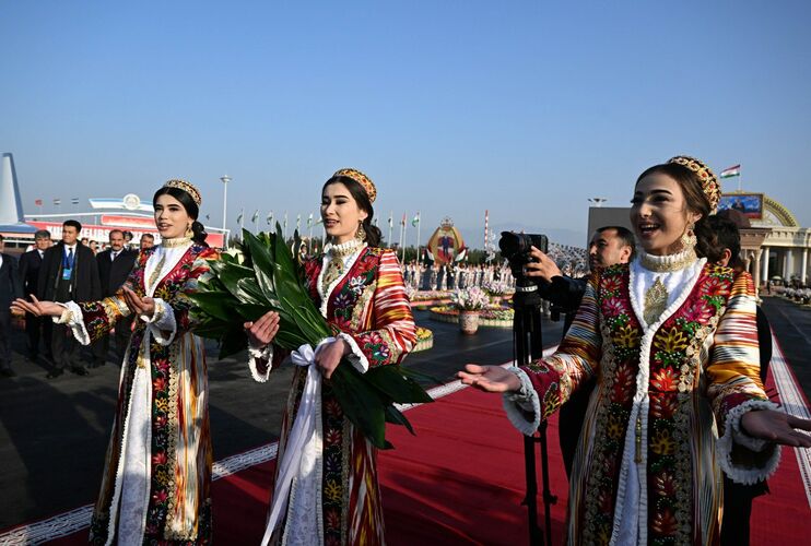 Улуттук кийимчен кыздар Кыргызстандын Президентин тосуп турушту. Андан кийин мамлекет башчылары үчүн кыскача концерттик программа тартууланды.